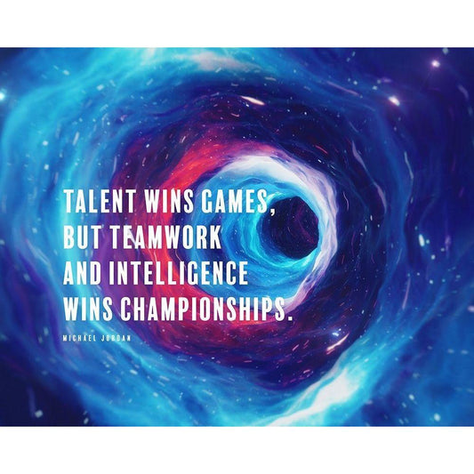 Michael Jordan Quote: Intelligence Wins Championships Black Modern Wood Framed Art Print by ArtsyQuotes