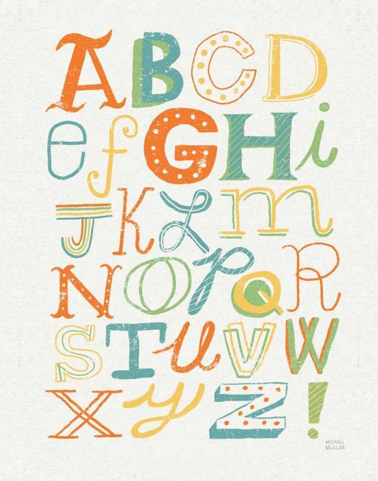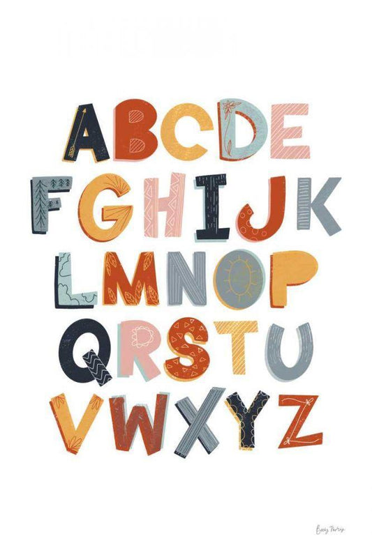 Colorful Alphabet Pastel White Modern Wood Framed Art Print with Double Matting by Thorns, Becky