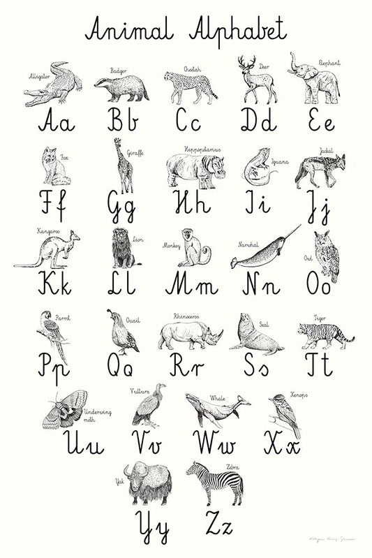 Animal Alphabet White Modern Wood Framed Art Print with Double Matting by Kucwaj-Tybur, Kasia