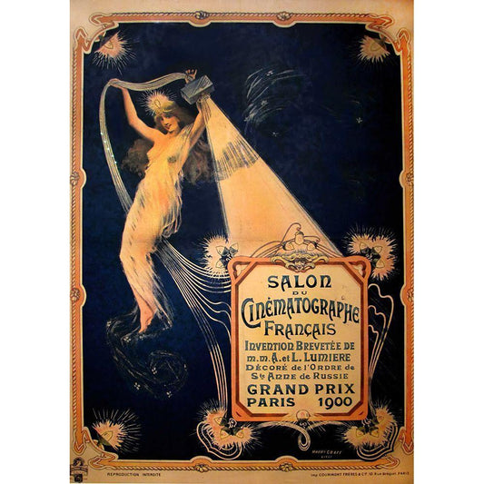 Salon du Cinématographe Black Modern Wood Framed Art Print by Vintage Apple Collection