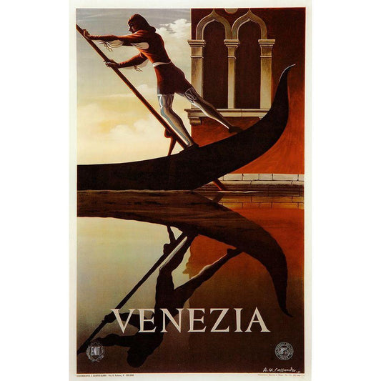 Venezia Venice Man Rowing Gondola Black Modern Wood Framed Art Print by Vintage Apple Collection