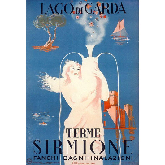 Terme Sirmione Black Modern Wood Framed Art Print by Vintage Apple Collection
