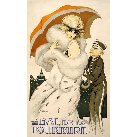 Bal De La Fourrure Black Modern Wood Framed Art Print by Vintage Apple Collection