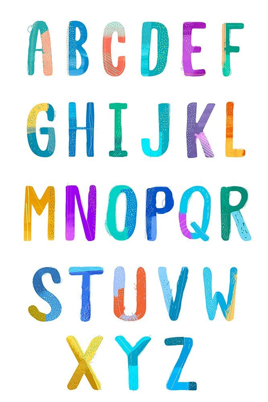 Alphabet Color White Modern Wood Framed Art Print with Double Matting by Folcarelli, Pernille