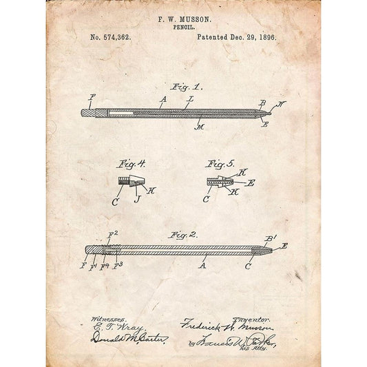 PP984-Vintage Parchment Pencil Patent Poster Black Modern Wood Framed Art Print by Borders, Cole