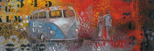Love Bus White Modern Wood Framed Art Print with Double Matting by May