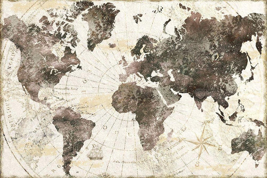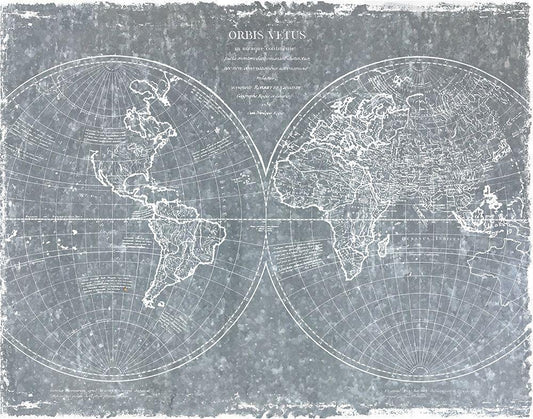 Galvanized World Map White Modern Wood Framed Art Print with Double Matting by CAD Designs