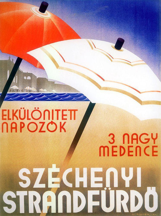 Russian Umbrellas White Modern Wood Framed Art Print with Double Matting by Vintage Apple Collection