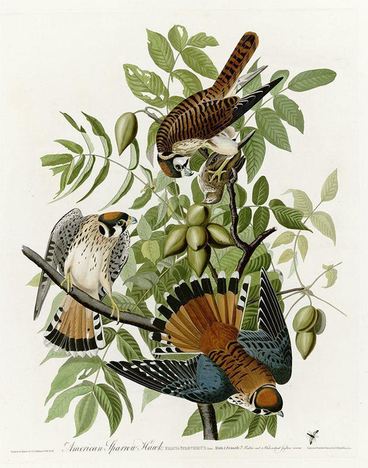 American Sparrow Hawk White Modern Wood Framed Art Print with Double Matting by Vintage Apple Collection