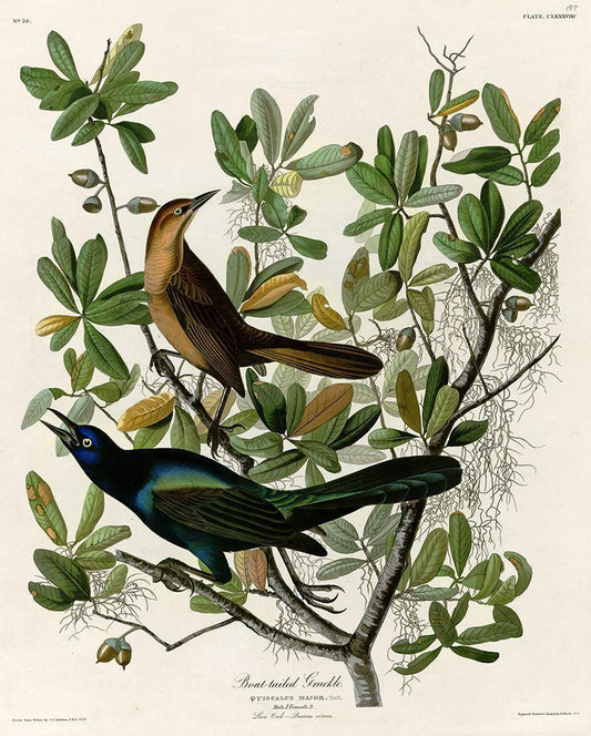 Boat Tailed Grackle White Modern Wood Framed Art Print with Double Matting by Vintage Apple Collection