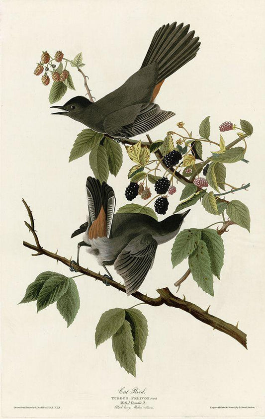 Catbird White Modern Wood Framed Art Print with Double Matting by Vintage Apple Collection