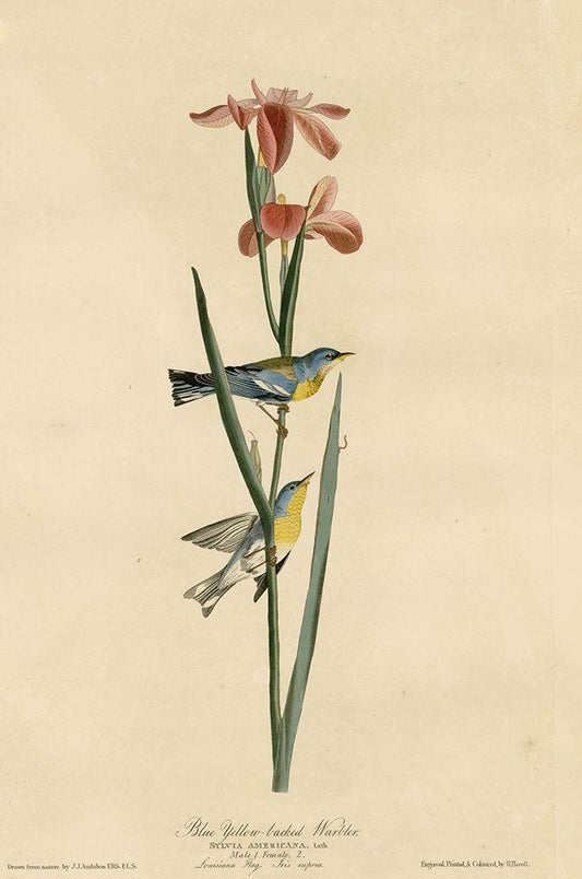 Blue Yellowbacked Warbler White Modern Wood Framed Art Print with Double Matting by Vintage Apple Collection