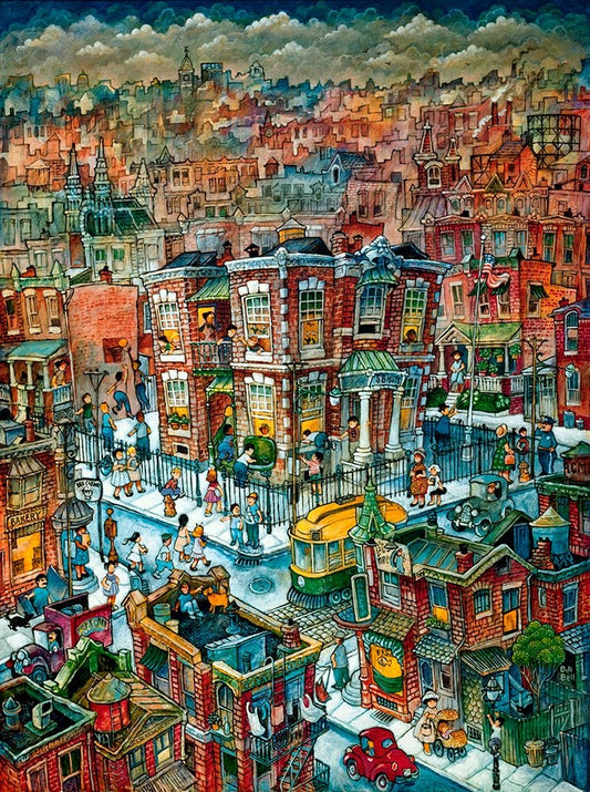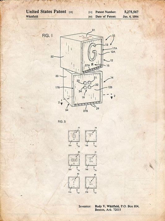 PP674-Vintage Parchment Childrens Building Block White Modern Wood Framed Art Print with Double Matting by Borders, Cole