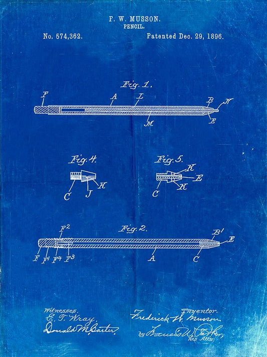 PP984-Faded Blueprint Pencil Patent Poster White Modern Wood Framed Art Print with Double Matting by Borders, Cole