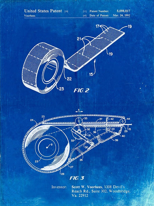 PP1133-Faded Blueprint White Out Tape Patent Poster White Modern Wood Framed Art Print with Double Matting by Borders, Cole