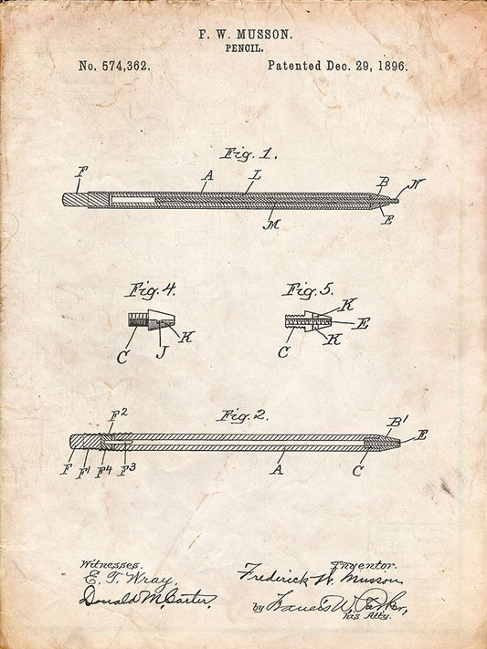 PP984-Vintage Parchment Pencil Patent Poster White Modern Wood Framed Art Print with Double Matting by Borders, Cole