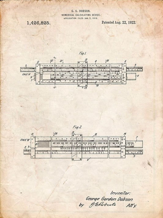 PP1041-Vintage Parchment Slide Rule Patent Poster White Modern Wood Framed Art Print with Double Matting by Borders, Cole