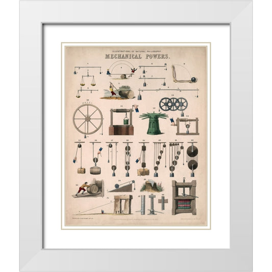 Mechanical Powers - 1850 White Modern Wood Framed Art Print with Double Matting by Emslie, John