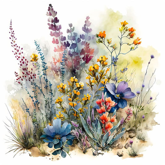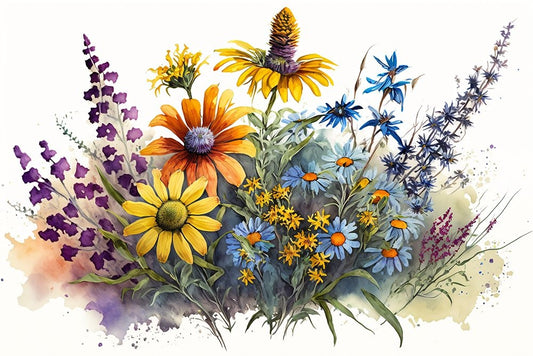 Watercolor Wildflowers 16 White Modern Wood Framed Art Print with Double Matting by Heere, Ray