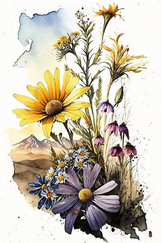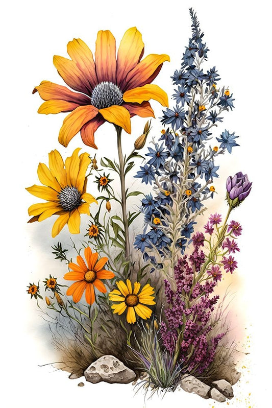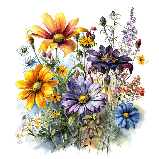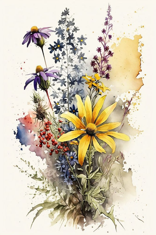 Watercolor Wildflowers 20 White Modern Wood Framed Art Print with Double Matting by Heere, Ray
