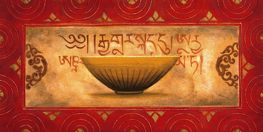 Tibetan Panel Black Ornate Wood Framed Art Print with Double Matting by Wong-Li