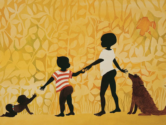 Watching the Babies Black Ornate Wood Framed Art Print with Double Matting by Unknown