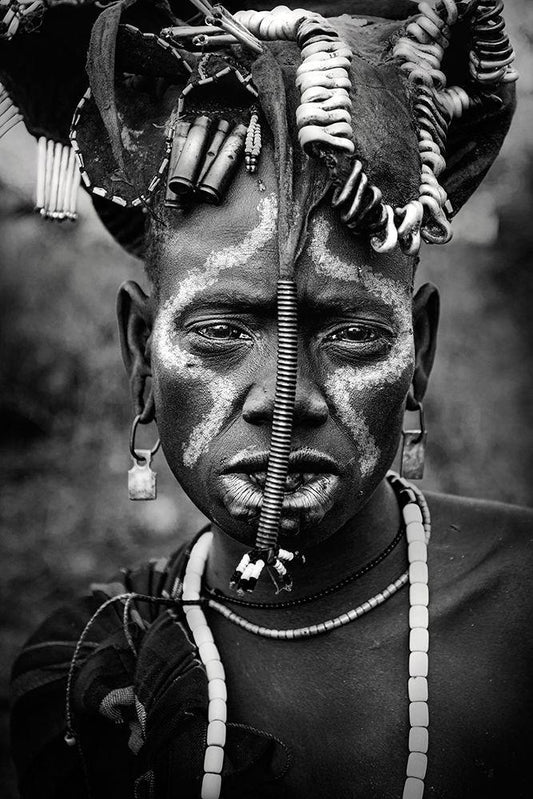 Mursi Woman Black Ornate Wood Framed Art Print with Double Matting by Perovich, Irene