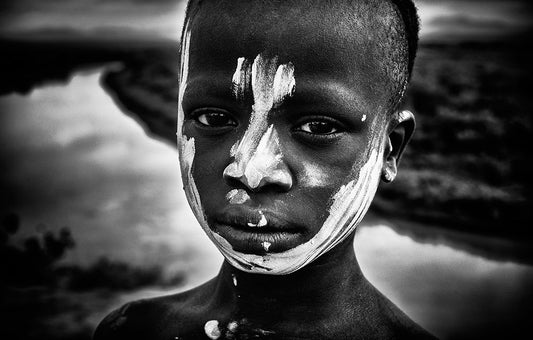 Tribal Beauty - Ethiopia-Mursi People Black Ornate Wood Framed Art Print with Double Matting by Pandolfini, Sergio