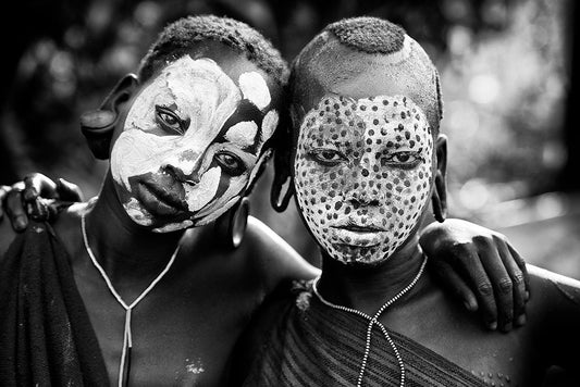 Painted Faces Black Ornate Wood Framed Art Print with Double Matting by Cole, Trevor