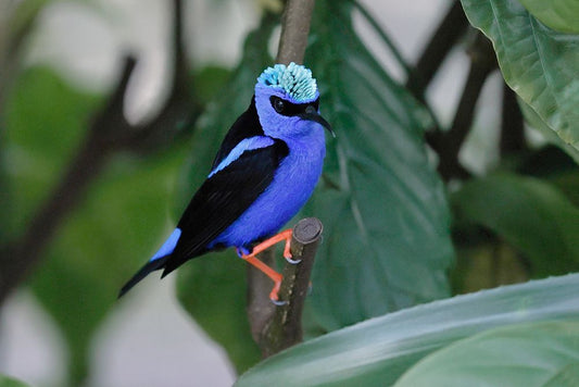 Red-legged honeycreeper Black Ornate Wood Framed Art Print with Double Matting by Jones, Adam