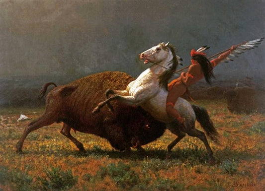 The Last of The Buffalo Black Ornate Wood Framed Art Print with Double Matting by Bierstadt, Albert
