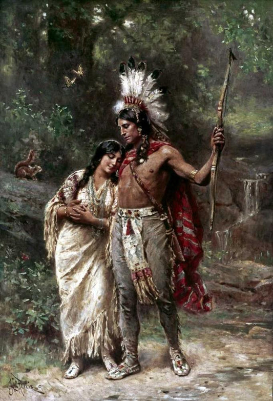 Hiawathas Wedding Journey - Longfellow Black Ornate Wood Framed Art Print with Double Matting by Ferris, Jean Leon Gerome