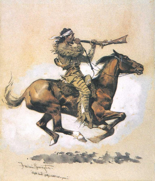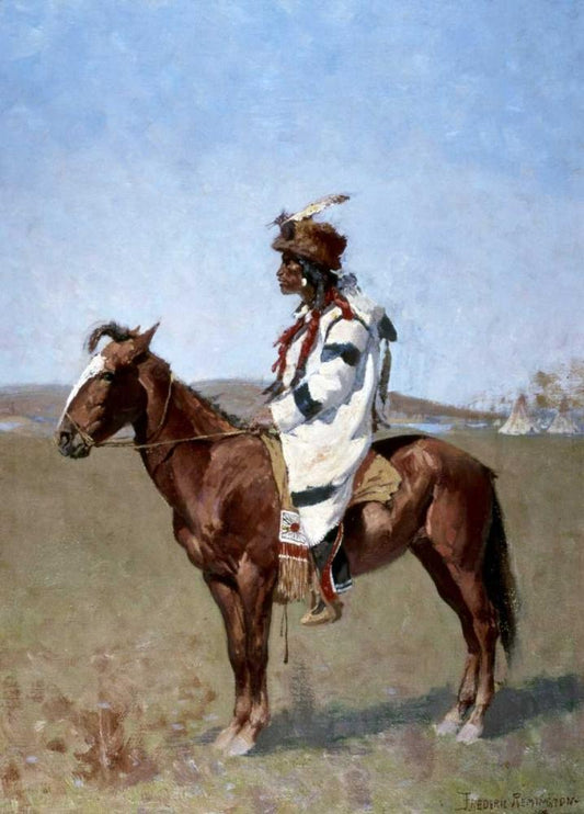 The Scout Friends Or Enemies 1889 Black Ornate Wood Framed Art Print with Double Matting by Remington, Frederic