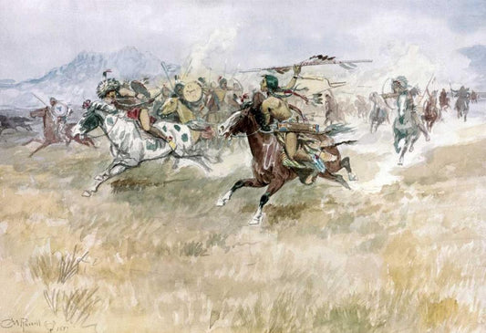 Attack Black Ornate Wood Framed Art Print with Double Matting by Russell, Charles M.