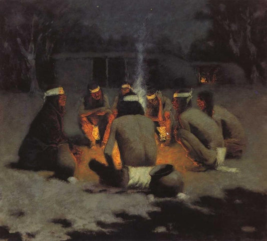 Apache Medicine Song Black Ornate Wood Framed Art Print with Double Matting by Remington, Frederic