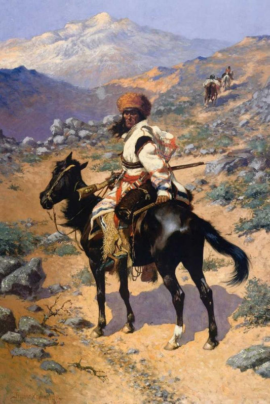 The Lookout Black Ornate Wood Framed Art Print with Double Matting by Russell, Charles M.