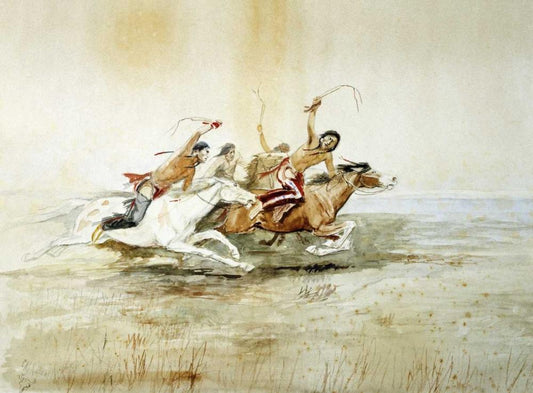 Indian Horse Race No.4 Black Ornate Wood Framed Art Print with Double Matting by Russell, Charles M.