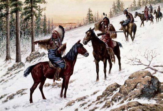 Indians On The Trail Black Ornate Wood Framed Art Print with Double Matting by Hauser, John