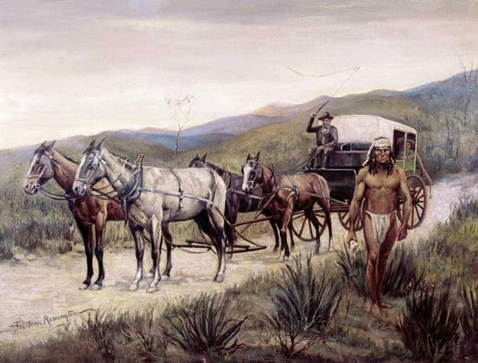 Halted Stagecoach Black Ornate Wood Framed Art Print with Double Matting by Remington, Frederic