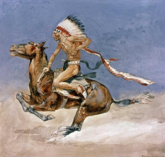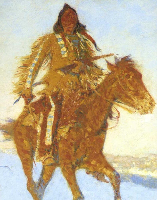 Blackfoot Indian Black Ornate Wood Framed Art Print with Double Matting by Remington, Frederic