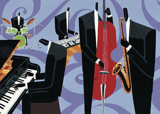 Jazz Session White Modern Wood Framed Art Print with Double Matting by Unknown