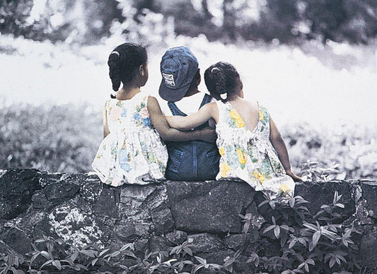 Three Kids White Modern Wood Framed Art Print with Double Matting by Unknown