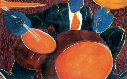 Drummer Boy White Modern Wood Framed Art Print with Double Matting by Unknown