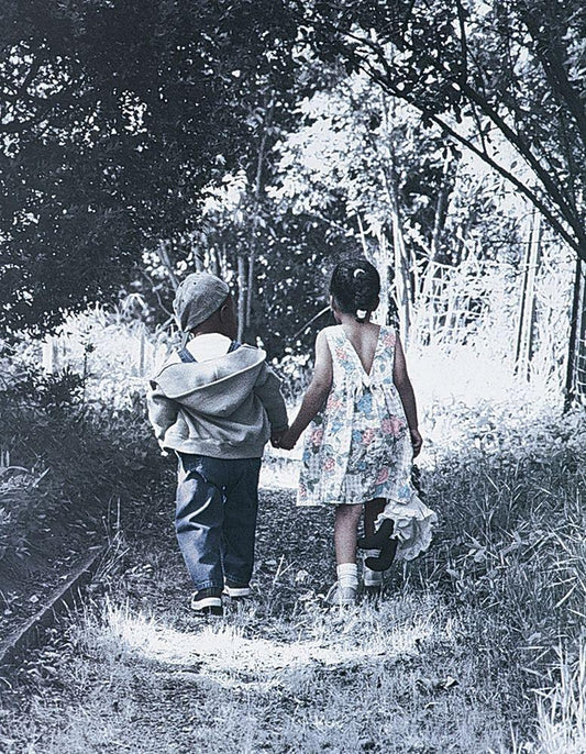 Hand in Hand White Modern Wood Framed Art Print with Double Matting by Unknown