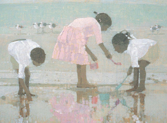 Clam Digging White Modern Wood Framed Art Print with Double Matting by Unknown