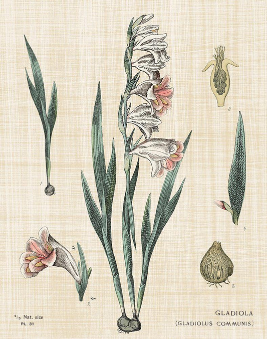 Gladiola Chart Linen Black Ornate Wood Framed Art Print with Double Matting by Schlabach, Sue