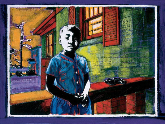 Boy on Stoop White Modern Wood Framed Art Print with Double Matting by Unknown