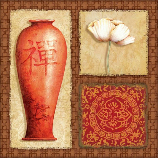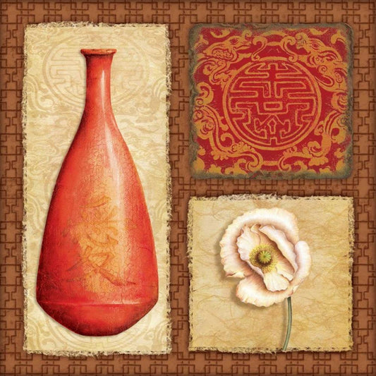 Asian Red I Black Ornate Wood Framed Art Print with Double Matting by Corbin, Delphine