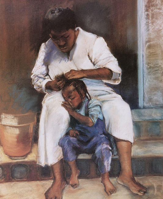 Hair Braiding White Modern Wood Framed Art Print with Double Matting by Unknown