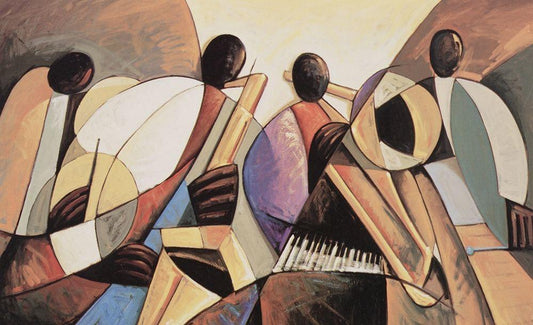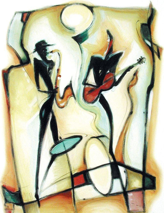 Sax and Strings White Modern Wood Framed Art Print with Double Matting by Unknown